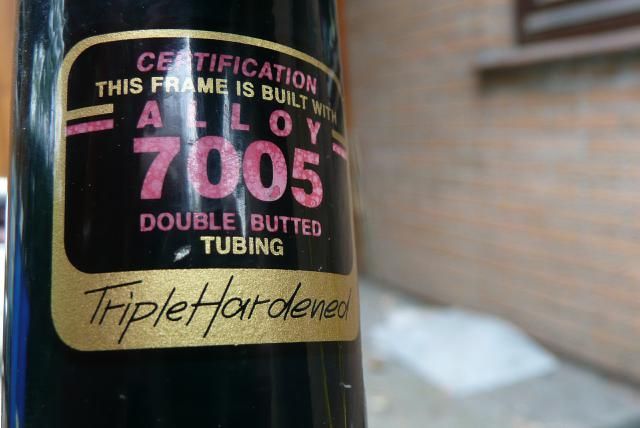 Aus dreifach gehärtetem (Triple Hardened) ALLOY 7005 (DOUBLE BUTTED TUBING), die Rahmenhöhe beträgt 60 cm. Damit ist dieses Fahrrad m. E. geeignet für Radfahrende zwischen etwa 1,78 bis 1,86 m Körpergröße.