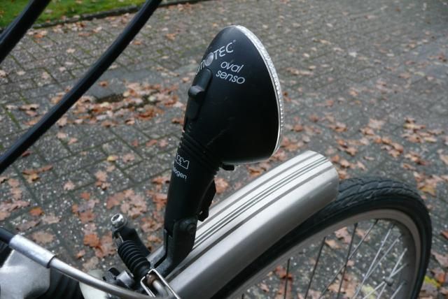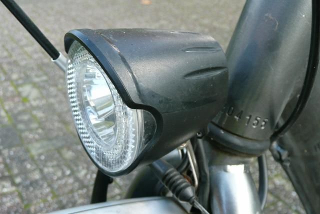 B & M „LUMOTEC oval senso HALOGEN" Front-scheinwerfer mit Automatik, SHIMANO "NEXUS INTER L HB-NX30" Nabendynamo; B&M „4DToplight multi" Diodenrücklicht. Auf Wunsch kann ein nagelneuer UNION LED Scheinwerfer (20 Lux) ohne Mehrkosten montiert werden (s. Anzeigentitel und vorletztes Foto, aufgenommen bei einem anderen Fahrrad).