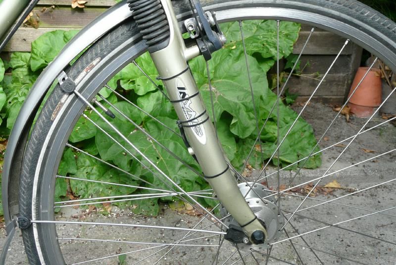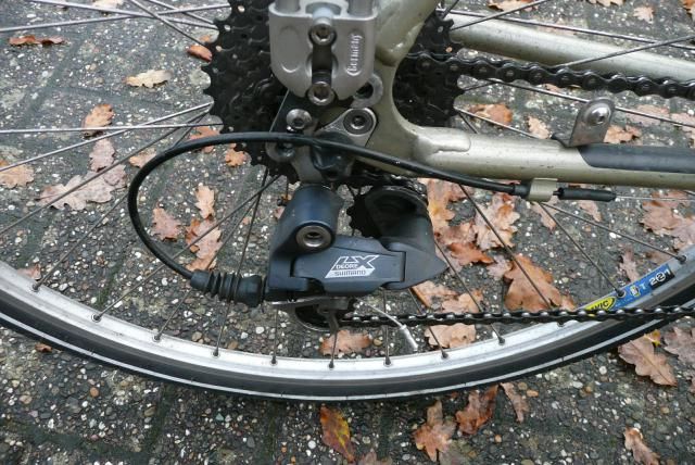 (Bei diesem Modell teilweise Doppelrohrrahmen) aus dreifach gehärtetem (Triple Hardened) ALLOY 7005 (DOUBLE BUTTED TUBBING), die Rahmenhöhe beträgt 53 cm. Damit „passt“ dieses Fahrrad m. E. für Radfahrende zwischen etwa 1,60 bis 1,70 m Körpergröße.