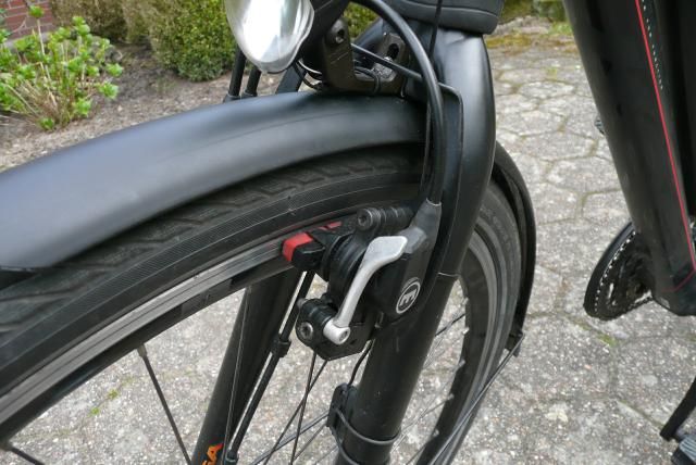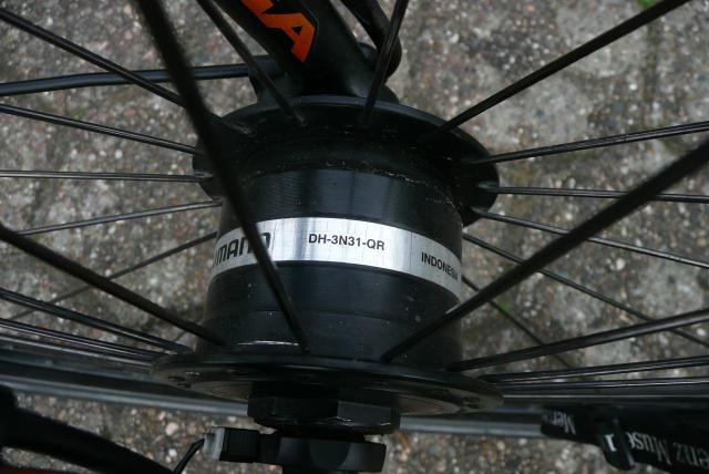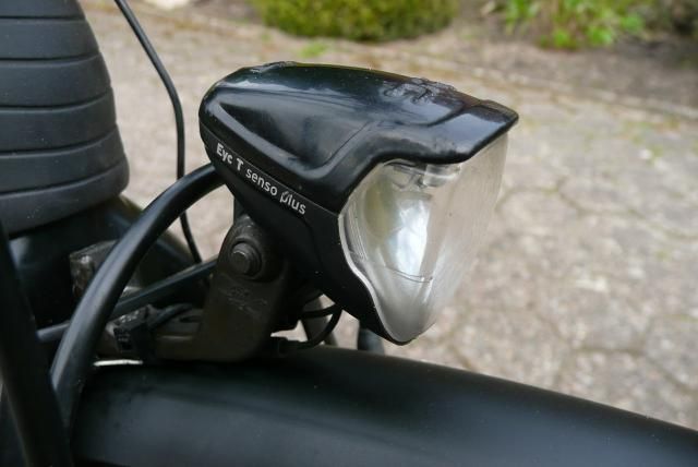 b&m „Eyc T senso plus“ LED Frontscheinwerfer, schwarzer SHIMANO „DH-3N31-OR“ Nabendynamo mit Schnellspannnabe, „Plateo by Spanninga“ LED Rücklicht.