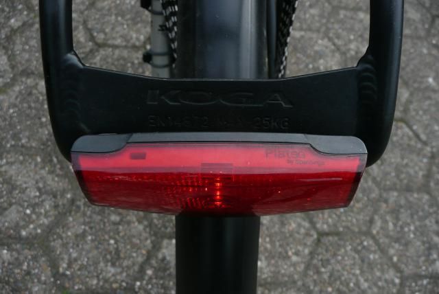 Schwarzer original KOGA Alu-Gepäckträger mit Spanngurt.