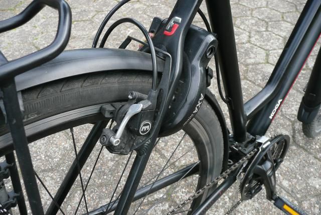 Sportlicher, geschweißter und geglätteter Rahmen mit integrierter Kabelführung und unterschiedlich geformten Rohren aus dreifach feuergehärtetem (TRIPLE HARDENED HEATTREATMENT) ALLOY 6061 (TRIPLE BUTTED TUBING); die Rahmenhöhe beträgt 53 cm. Damit ist dieses Fahrrad m. E. geeignet für Radfahrende zwischen etwa 1,60 und 1,75 m Körpergröße.