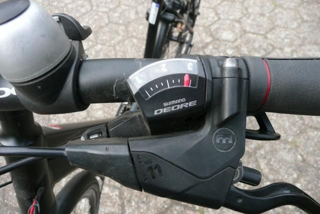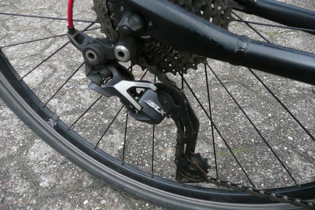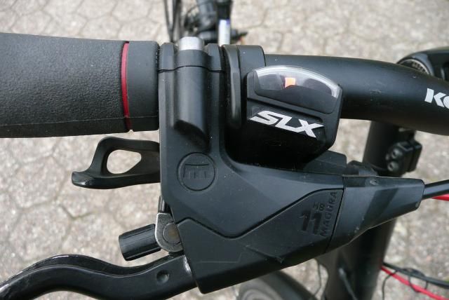 Komplette SHIMANO SLX 30-Gang (3 x 10) Kettenschaltung, SLX / DEORE Daumenschalter („Trigger“), MAGURA HS 11 hydraulische Felgenbremsen; SHIMANO DEORE Hinterradnabe.